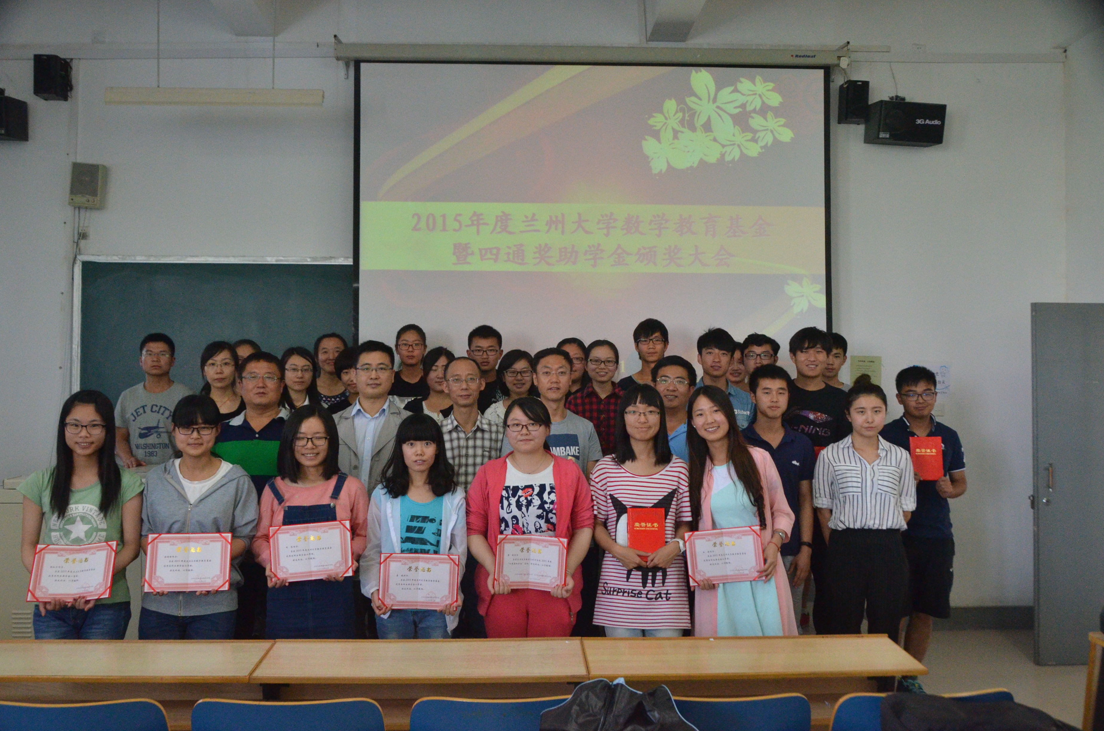6月15日下午,太阳集团tyc151cc在天山堂举行了“2015年度太阳集团tyc151cc数学教育基金暨2016年度四通奖助学金”颁奖仪式。太阳集团tyc151cc部分班子成员、员工代表和兰州四通公司总经理张基庆、副总经理陆学本参加了仪式。仪式由数学与统计公司党委副书记李发荣主持。