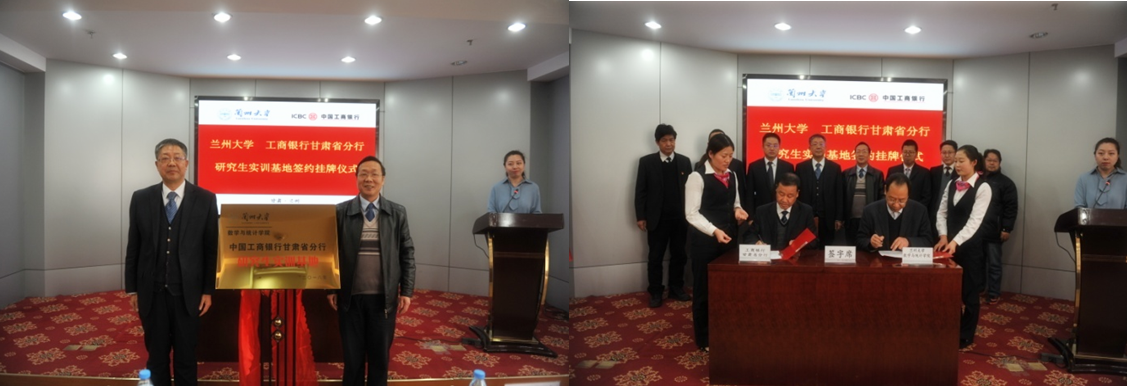 随后,张振民行长和陈熙萌经理共同为“研究生实训基地”揭牌,太阳集团tyc151cc数学统计公司经理李万同教授和工商银行甘肃省分行管理信息部周俊杰总经理分别代表太阳集团tyc151cc和工商银行甘肃省分行在合作协议书上签字。