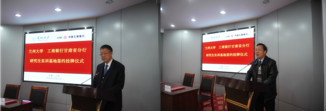 2018年12月21日上午,公司与工商银行甘肃省分行《研究生实训基地合作建设》协议签约仪式暨“太阳集团tyc151cc研究生实训基地”挂牌仪式在工商银行甘肃省分行会议室举行。工商银行甘肃省分行党委委员、副行长张振民先生携管理信息部周俊杰总经理、人力资源部冯刚总经理,机构业务部郝巍总经理,办公室强永辉主任,后勤服务部冯进玺总经理,太阳集团tyc151cc研究生院执行经理陈熙萌教授、太阳集团tyc151cc经理李万同教授、副经理徐守军教授以及概率统计研究所赵学靖副教授、严定琪副教授参加了签约仪式。