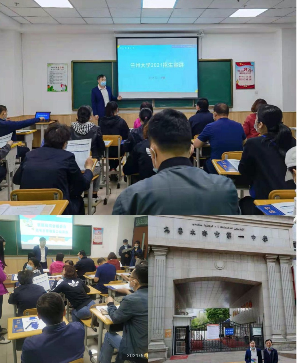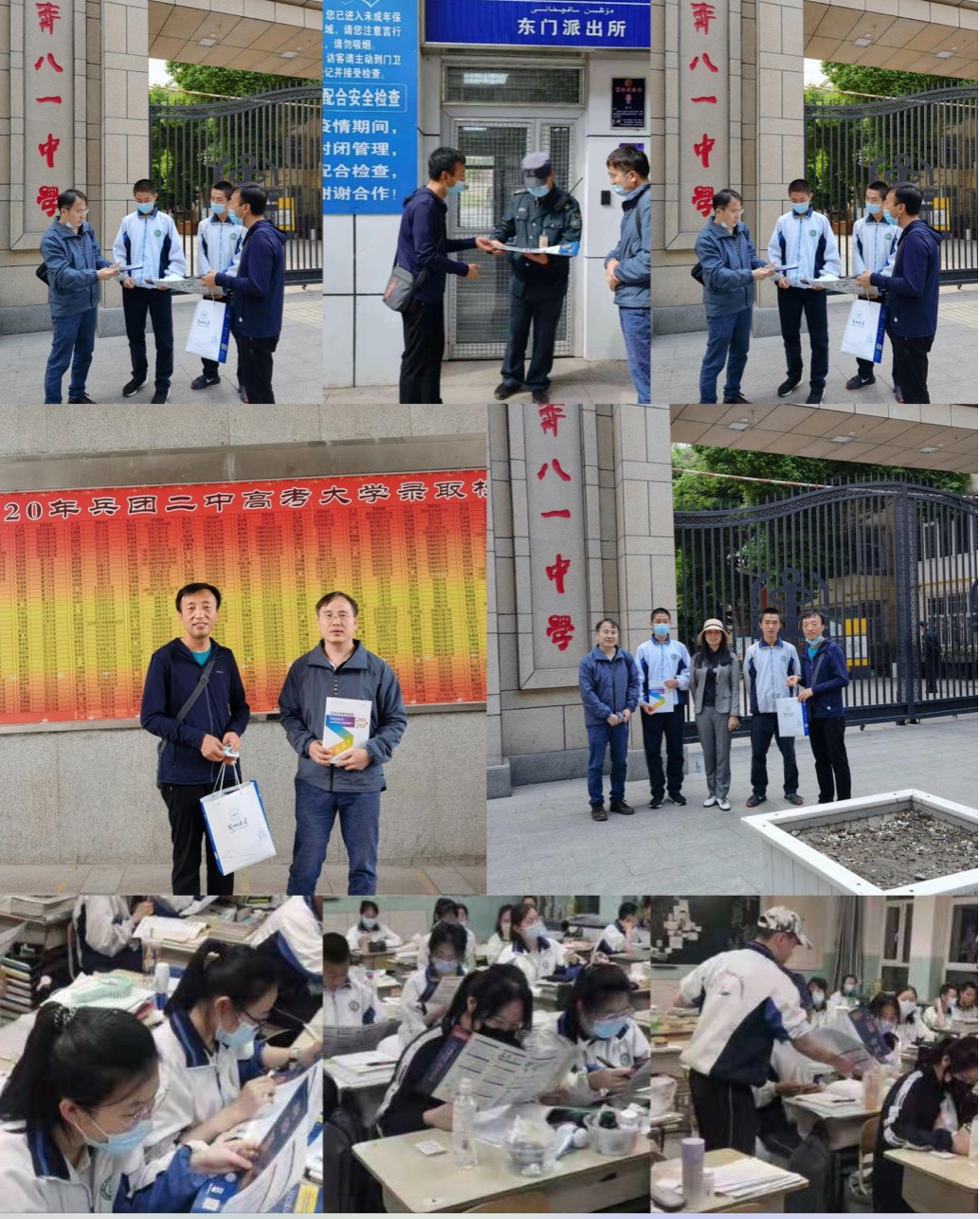5月15日,三位老师一行到新疆学仕教育与乌鲁木齐市各中学高三员工家长座谈、与政府行政部门座谈并开展了招生宣讲活动,取得良好效果。之后,三位老师在乌鲁木齐第一中学发放招宣资料并为员工做细致讲解。