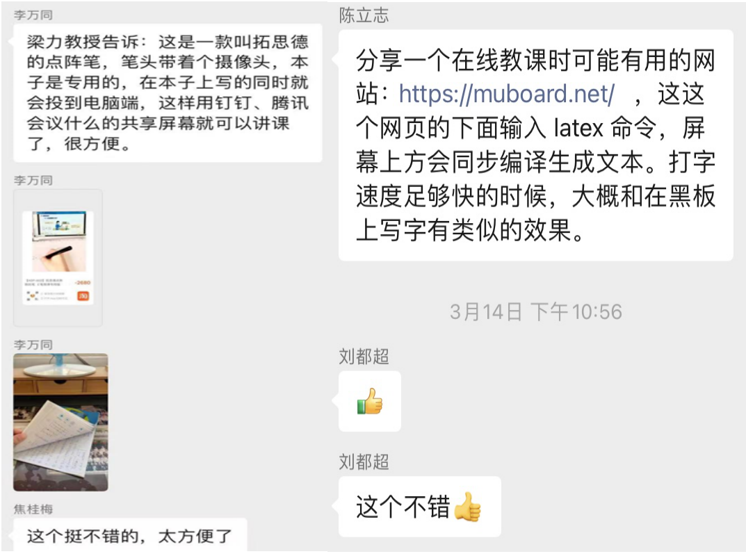在线上教学阶段老师们更加注重与同学们的互动,通过摄像头展开与线下教学无二的“面对面教学”,老师将相关的学习资料和作业上传到学习通等平台,建立QQ群和微信群密切联系员工,关注同学们的学习进度。除此之外,老师还将答疑课更改为线上交流学习。在这次的线上学习过程中,我们借助之前的经验,真正的实现了停课不停学的线上学习,实现了防疫,学习两手抓。