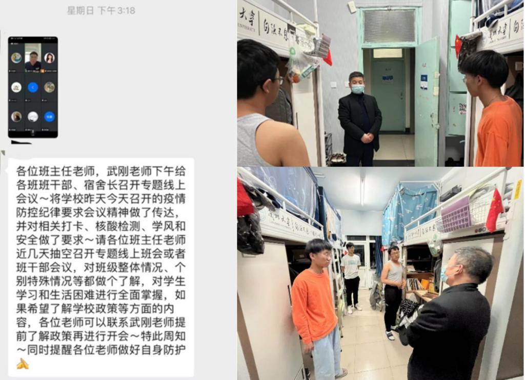员工长期进行线上听课易出现焦虑、烦躁情绪,为避免此类情况发生,班主任老师、辅导员老师及时通过班干部了解班级情况,多次召开线上会议,掌握重点员工动态,及时做好关心关怀,保证公司产品活动正常进行。公司带班领导和辅导员还深入员工宿舍实地察看员工线上学习及日常生活情况,解决实际问题。同时叮嘱同学们做好个人健康防护,保持良好生活习惯,齐心协力,共渡疫情难关。