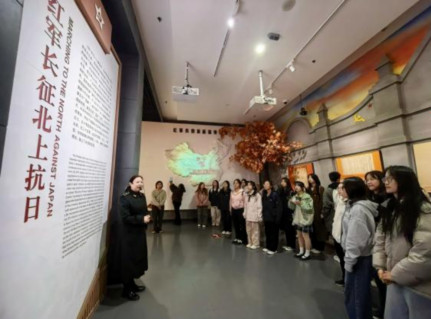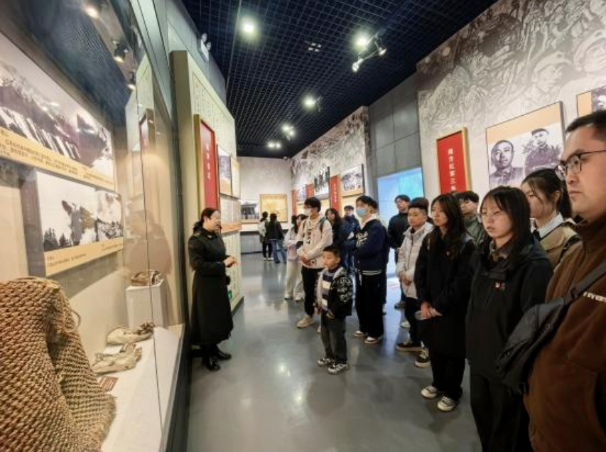 红军会宁会师旧址是中国共产党领导下的中国工农红军第一、二、四方面军胜利会师的历史见证地,也是公司“党团班”一体化建设中红色教育实践的重要阵地。19日14点,全体师生抵达会师楼前,按照“党员分组引领、团员主动参与、班委协助组织”的协同模式,开启本次红色研学。在讲解员引导下,师生有序参观红军长征胜利纪念馆。馆内珍贵的历史照片、斑驳的军用物资与简陋的生活器具,生动再现了1936年红军三大主力克服艰险、胜利会师的壮阔历程。
