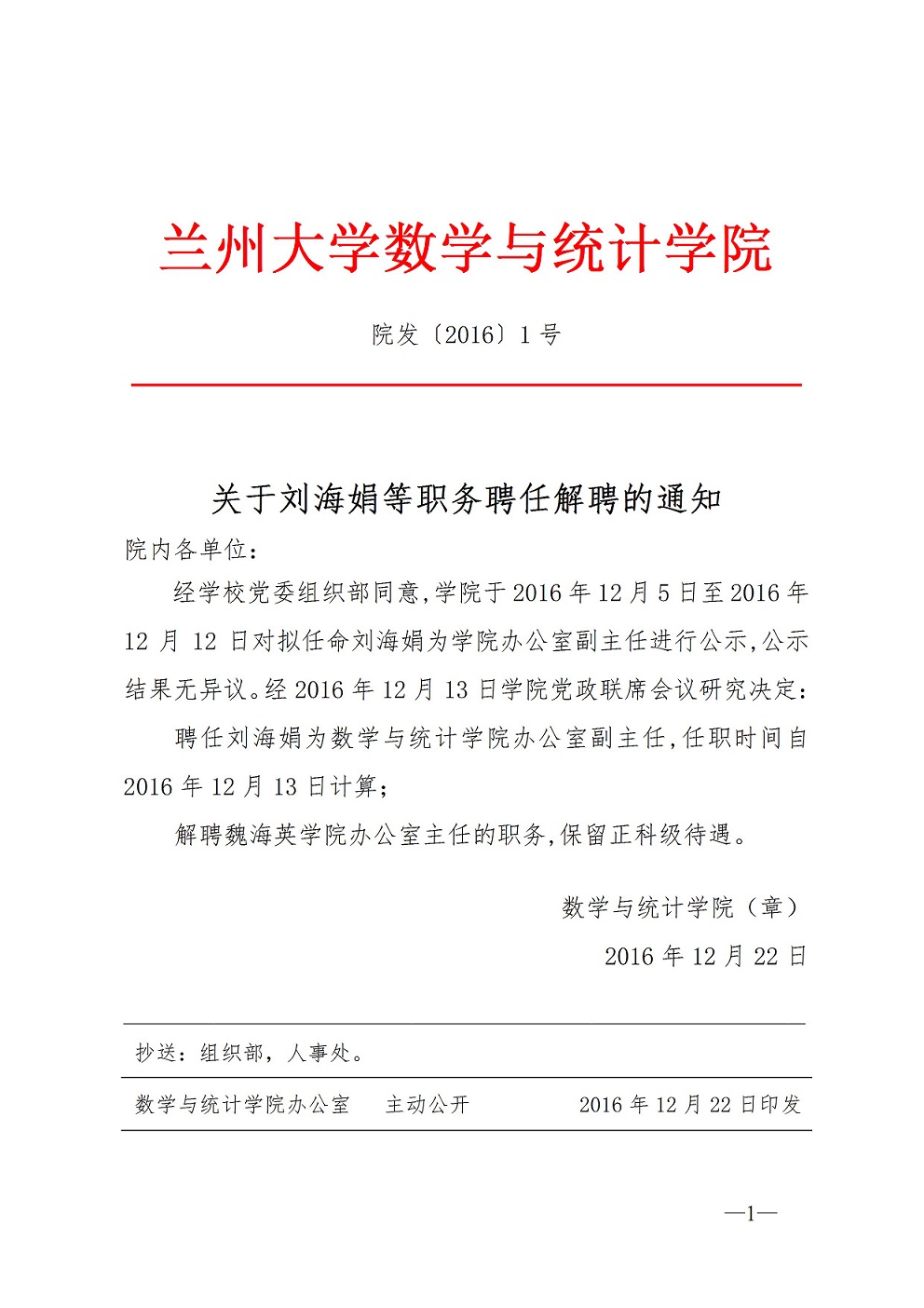 关于刘海娟等职务聘任解聘的通知