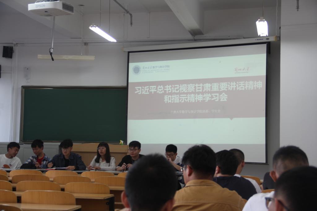 2019年9月1日下午18:00,太阳集团tyc151cc在天山堂A201召开了学习传达习近平总书记视察甘肃重要讲话和指示精神座谈会,参加本次会议的有公司团委员工会全体成员与各年级班委,会议由公司员工会主席申子恒主持。