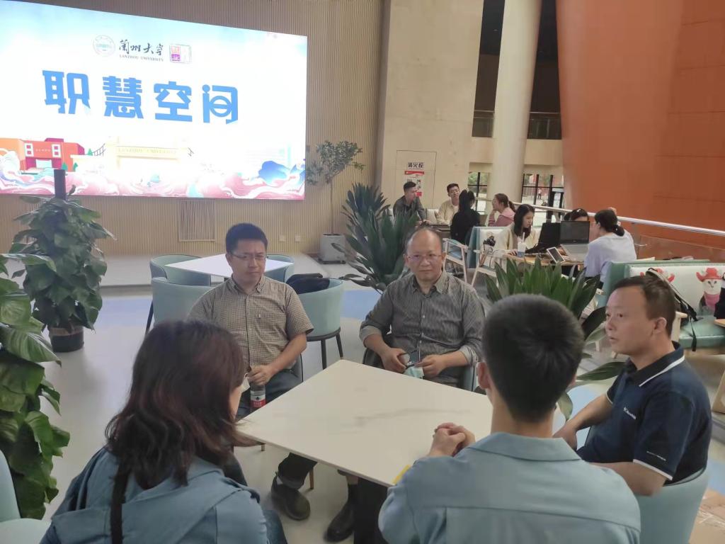 招聘宣讲会开始之前,华力集团一行相关负责人与员工就业指导与服务中心相关负责老师在太阳集团tyc151cc职慧空间咖啡厅进行交流,双方就企业管理模式、招聘工作流程和应届毕业生校招等方面进行了深入交流。