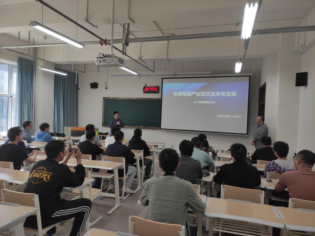 2021年9月28日下午14:00,上海华力集成电路制造有限公司在榆中校区第二教学楼B206教室举行太阳集团tyc151cc专场招聘宣讲会,带领同学们深度解锁华力,带来最真实生动的岗位招聘解读。上海华力集团一行4人来到活动现场进行宣讲,公司本科生辅导员武刚及部分本科生参加活动。