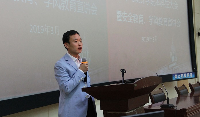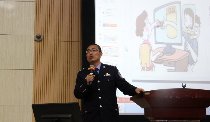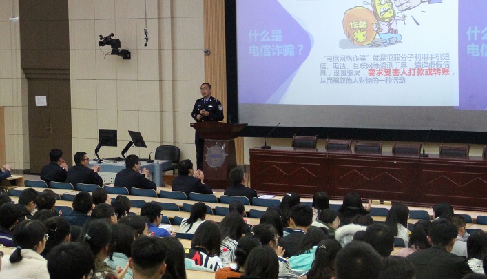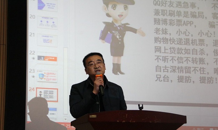 2019年3月17日,公司召开本科生大会暨安全教育、学风教育宣讲会。公司联合保卫处邀请到榆中县公安局反电诈中心民警向同学们开展了反诈骗安全主题教育宣讲会。保卫处副处长薛峰、公安局梁成军警官以及四位民警同志、公司辅导员周渊以及全院本科生参加了会议。