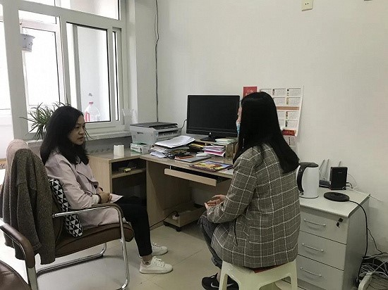 公司党委副书记许倩对毕业生进行一对一指导
