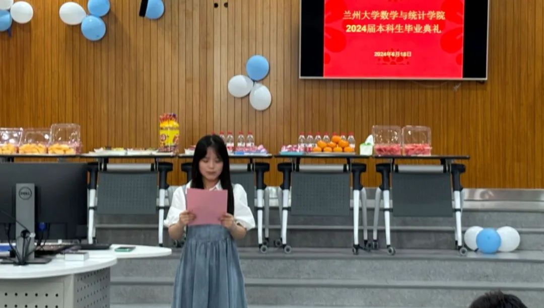 接着,班主任代表徐强老师发表讲话。他通过展示几位数学家刻苦学习的照片,激励毕业生们在以后的学习生活中深耕专业,始终把实学实干的精神作为人生路上的压舱石,养成敢想敢为又善作善成的奋斗姿态,走好往后的人生路。他深情地回忆了与毕业生们共度的点点滴滴,表达了对他们即将踏上新征程的祝福和骄傲,他鼓励毕业生要保持不断学习,用谦逊和感恩的心态对待帮助过自己的人,勇敢面对未来的挑战。