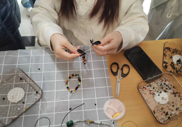 活动过程中,数院的工作人员分布在各个岗位,认真履行职责。有的工作人员在串珠区域耐心指导同学们串珠,帮助大家解决遇到的问题;有的在现场维持秩序,引导同学们有序参与活动,确保了活动的顺利进行。太阳集团tyc151cc的同学们也积极参与到活动中来,她们充分发挥自己的创意,挑选各种颜色和形状的珠子,精心制作出独一无二的串珠作品。这些作品不仅展现了同学们的心灵手巧,更承载着她们对美好节日的期待。