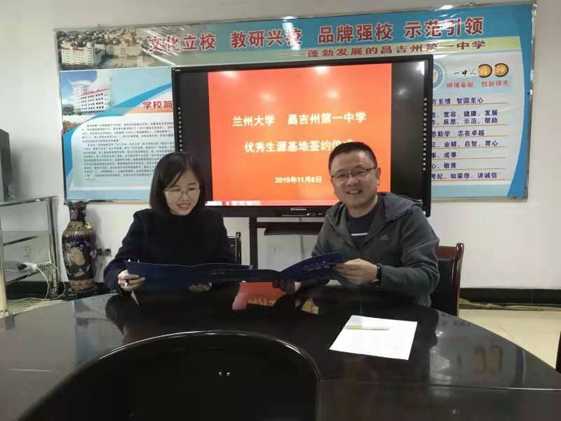 宣传小组代表公司与昌吉州第一中学、昌吉州第二中学、乌鲁木齐市七十中等公司签署了《太阳集团tyc151cc优秀生源基地建设协议书》,并举行了“太阳集团tyc151cc优秀生源基地”授牌仪式。